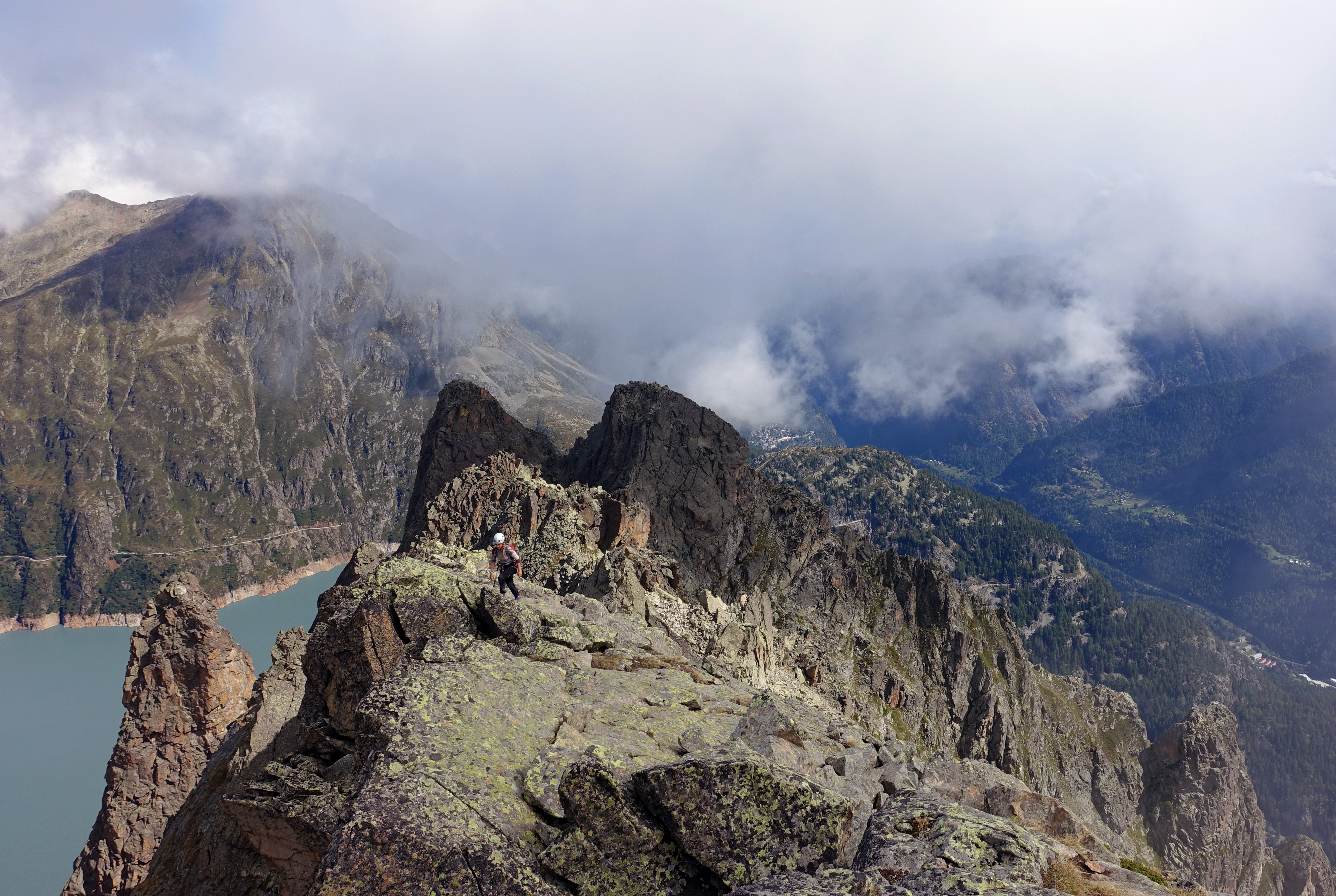 Walking accross the Emosson Dam to reach the Perrons traverse
