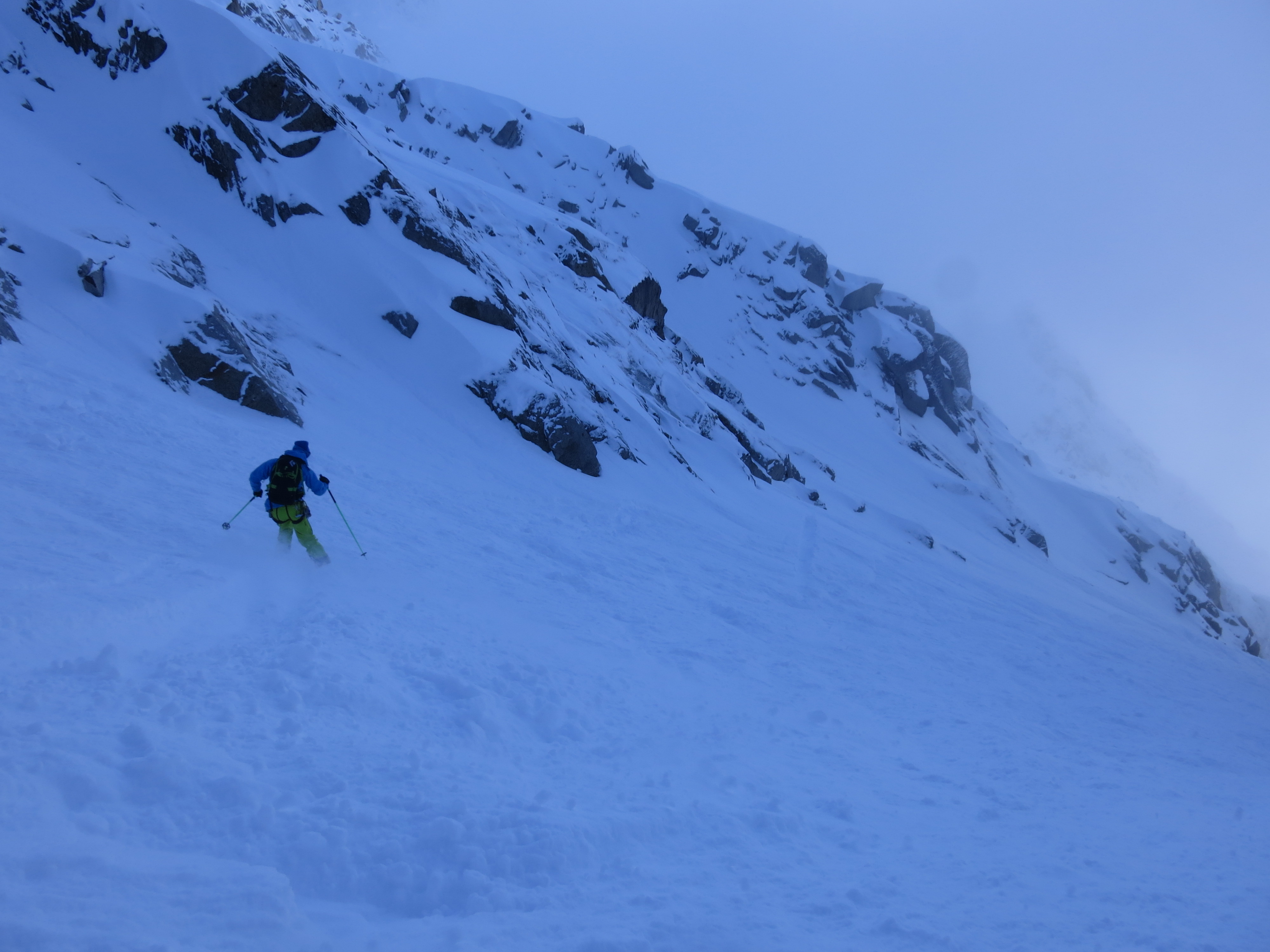 I’ve wanted to climb Mont Dolent for many years. Although not a massive peak compared with other alpine giants, Mont Dolent is quite unique. Its the point where three of the great alpine countries meet, France to the NW, Switzerland to the East and Italy to the south. With the classic Ice Goulotte of the Charlet-Couturier route on the Argentiere basin face and moderate ski terrain to the south it is an unsung gem of ski mountaineering and offers a near perfect day out if you can just get the timing right….